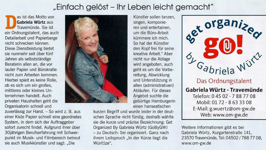 Sie finden auf dieser Seite eine kleine Auswahl von Artikeln über mich, die seit 2012 in der regionalen Presse in und um Lübeck und Travemünde erschienen sind. Sie möchten über mich schreiben? Im Download-Bereich rechts habe ich die wichtigsten Dateien für Sie zusammen gestellt.